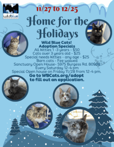 Every Saturday from 12-4 Open House at Wild Blue Cats Sanctuary, 5975 Burgess Rd, Colorado Springs, 80908